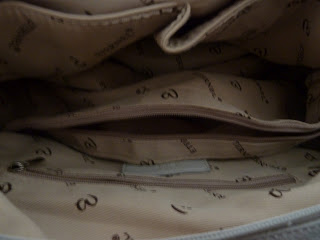 Ich habe versucht die Tasche auch innen zu fotografieren, da sie aber nicht so fest ist, ist das nicht so wirklich gelungen… Ich hoffe, ihr könnt trotzdem etwas erkennen 🙂 Auf jeden Fall ist sie in zwei bzw. drei große Fächer geteilt. Das in der Mitte kann man noch mit einem Reißverschluss zumachen. Auf den Seiten sind so Einsteckfächer. Eins davon lässt sich ebenfalls mit einem Reißverschluss verschließen und die anderen Beiden sind unterschiedlich groß. Hoffentlich konnte ich euch wenigstens einen kleinen Eindruck vom „Innenleben“ vermitteln.